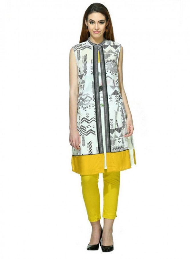 Mandarin Neck sleeveless Printed Gillet 40" Length