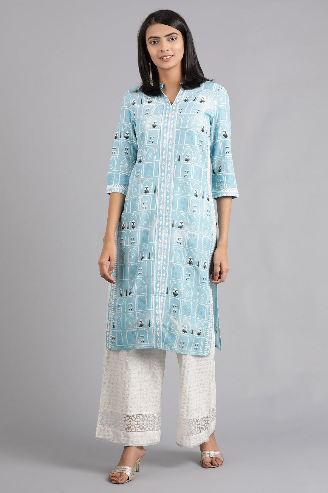 Ecru Glitter Booti print parallel pants with brasso detail at hem.