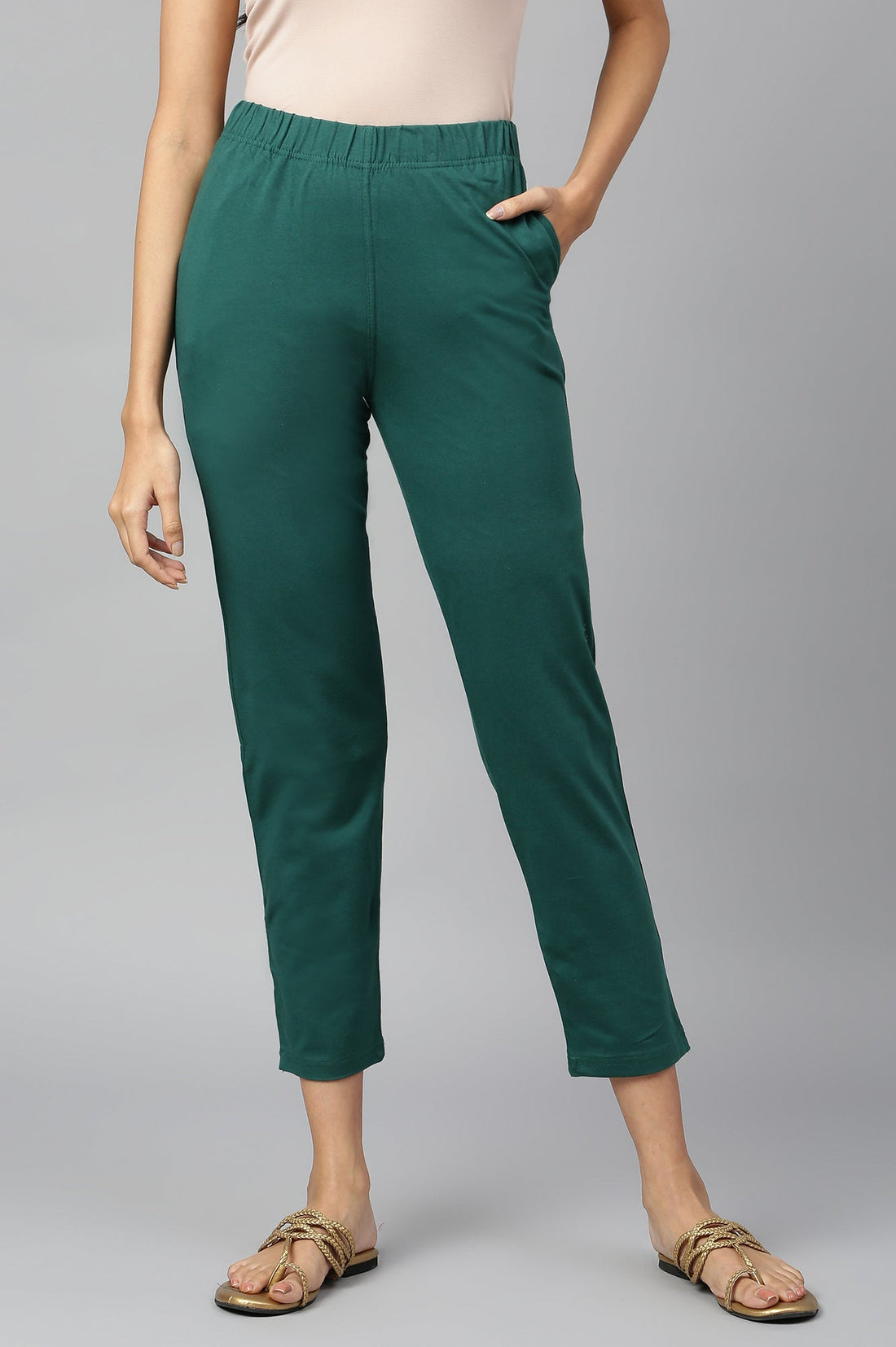Crafted in a rich, muted sage green hue, these cotton lycra pants are designed to elevate your workout or casual look. The mid-rise waistband offers a comfortable fit, while the calf-length cut adds a trendy touch. Perfect for travel, these pants feature a slip-on closure for easy wear. Pair them with a kurta or tops to complete your look.
