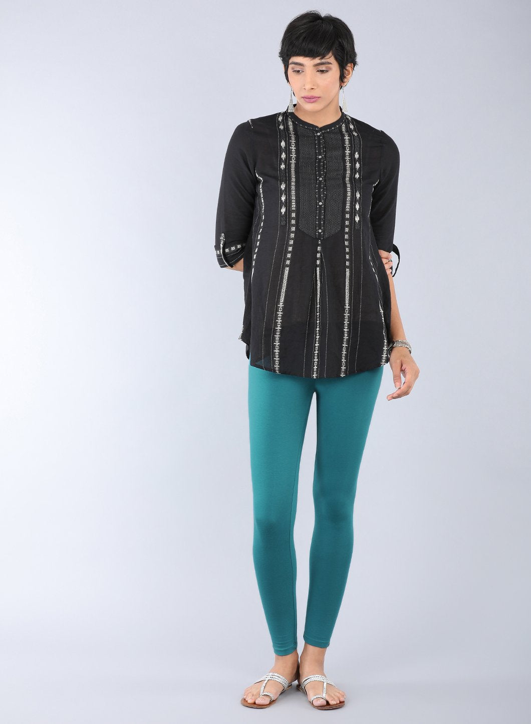Green solid ankle length tights with elasticated waistband.