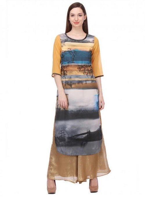 Fetch compliments for your rich sense of style with this multicoloured 3/4 sleeve round neck kurta with 49" Length from Wishful by W.