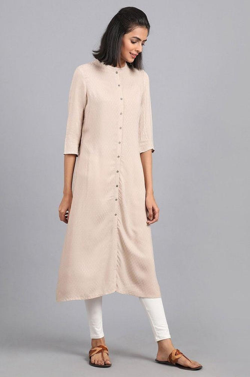 Orange mandarin neck solid kurta with button placket detail on the front and side slits.
