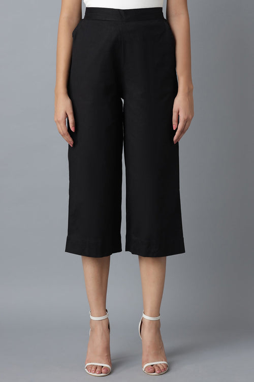 Crafted for effortless elegance, these pink solid culottes are a wardrobe essential. The mid-rise design and partially elasticated waist ensure a comfortable yet flattering fit, while the woven cotton fabric adds a touch of sophistication. Featuring two practical side pockets, these culottes are perfect for casual outings or relaxed gatherings. Pair them with a chic top or kurta to complete your stylish look.