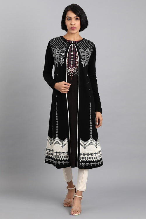 Red jacquard long knitted cardigan.