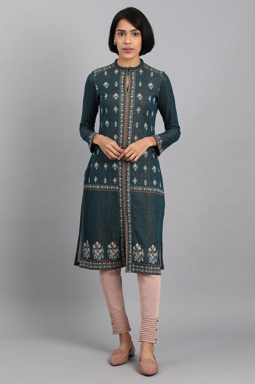 Red Woollen leggings with elasticated waistband and placket detail at hem.