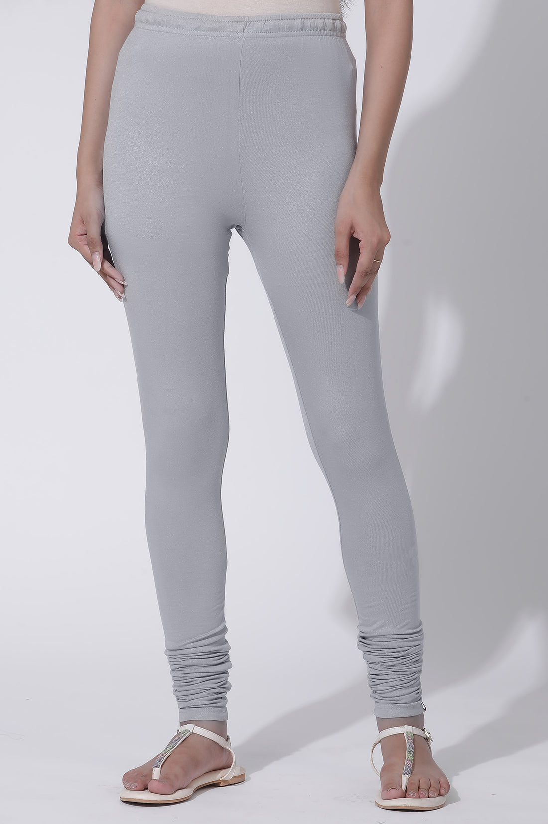 Silver knitted churidar in mid-rise and elasticated waistband.