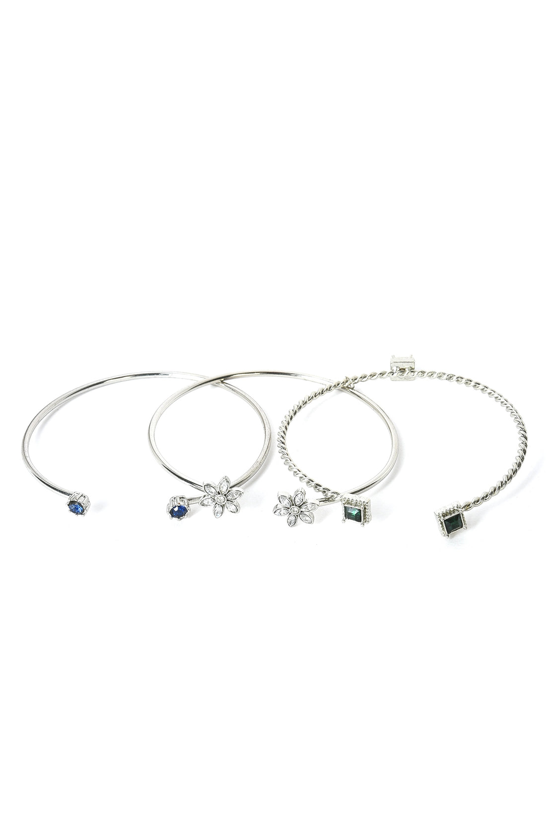 Timeless Silver Twisted Adjustbale Bangle Set With Green And Blue Crystal Stones