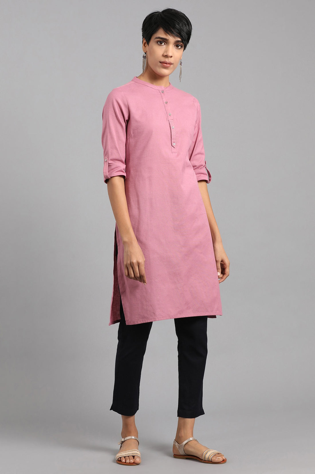 Blue slim pants in mid-rise and partially-elasticated waistband.