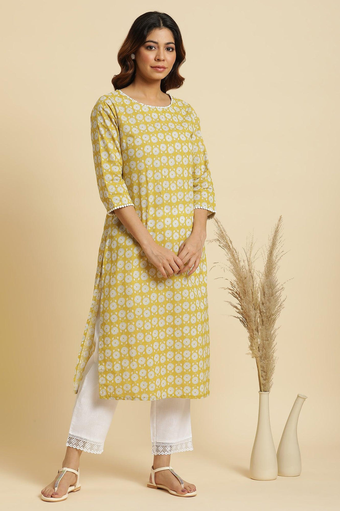 Discover the perfect blend of comfort and style with this women's yellow kurta. Crafted from 100% pure cotton using a woven construction technique, this ethnic piece is designed for casual wear. The round neckline and three-quarter sleeves add a touch of elegance, while the floral print brings a vibrant charm to the straight silhouette. Ideal for various occasions, this kurta seamlessly combines traditional aesthetics with modern comfort, making it a versatile addition to your wardrobe. The breathable cotton fabric ensures all-day comfort, whether you're running errands or attending a casual gathering. Embrace the ethnic charm and step out in confidence with this beautifully designed yellow kurta.